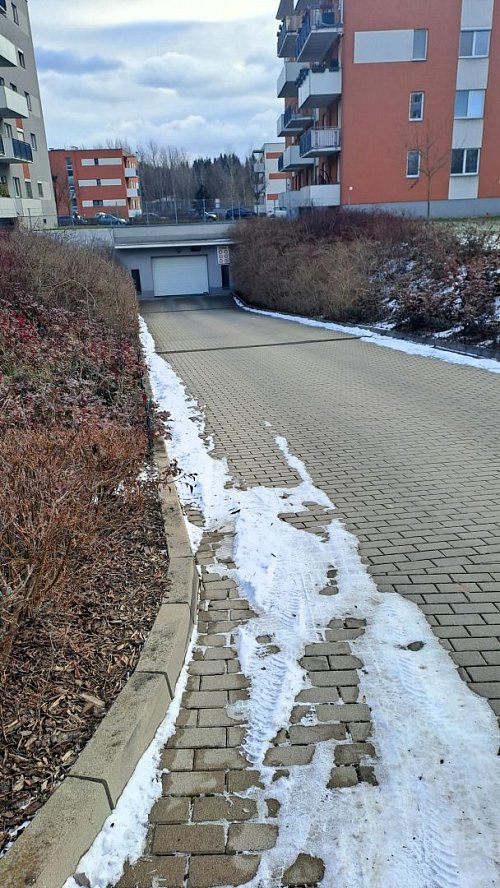 Stání se nachází v podzemní garáži, je suché, bezpečné a přístupné 24/7.